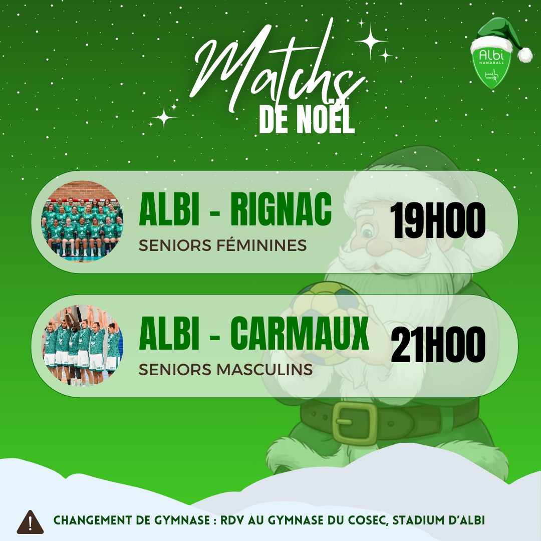 Pour le dernier week-end de matchs de l’année, nous déménageons au gymnase du Cosec au Stadium d’Albi pour une soirée de Noël !