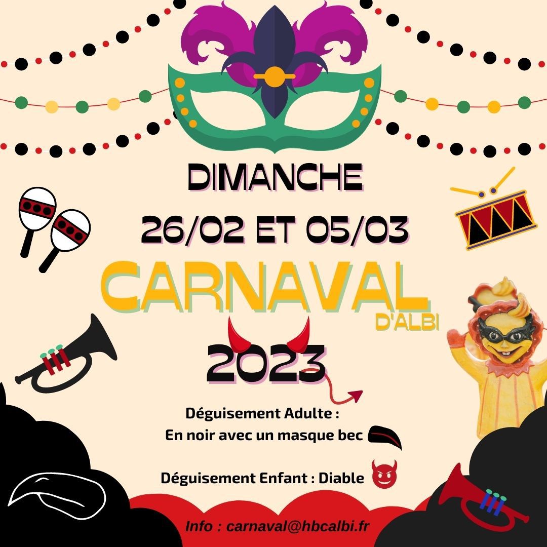 Cette année encore, nous avons la chance de participer au carnaval d’Albi, dont le thème est "Haut les Masques". Quoi de mieux que de se retrouver petits et grands autour de notre char qui se nomme: "Grand Nez, Grand Bec"!